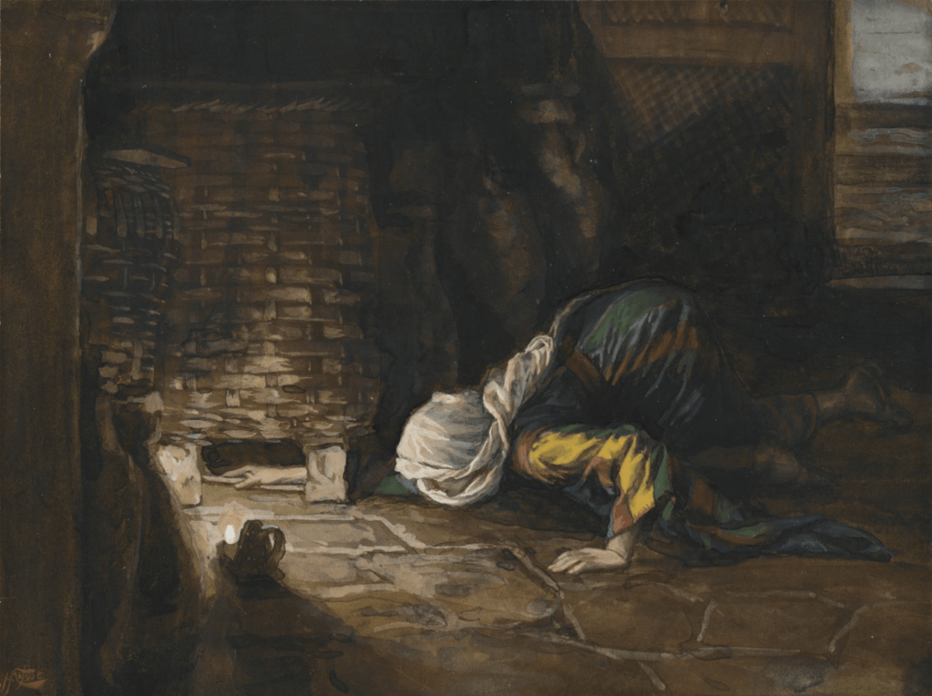 What do you think the woman is doing? Have you ever done this when you are looking for something? How does it feel when your body is like that? How is she able to see what she’s looking for? Does the candle light up the whole room? Which parts of the room are dark and which parts are light? How can you tell? What is the woman wearing? What colors are her clothes? Why is she looking so hard for what she has lost? Does this painting feel warm or cold?