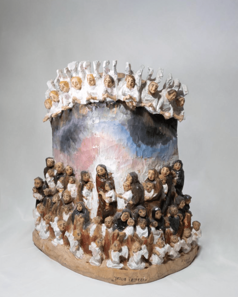 The story is a circle. It begins with a dream of a girl and her child. The birth is a birth as banal and ordinary as millions of others. The pain, the blood, the sweat, the woman’s body. He is born hungry and cold, like every one of us in the history of the world. He is born with flesh. He dies between thieves, a cruel and humiliating death but no more so than many millions of others the world over. His life is a human life. But then, he comes back. What do we make of this? Why does he come back? And why does he visit the Americas? We could decide that it is because he has triumphed. He comes to say that mortality is beneath his heel. The final victory is won. The problem—human sin—has been dealt with. This is what I might call the “Easter” Christ, or the transcendent Jesus. The problem is, I just don’t think this is it. This is a linear arc, a triumphalist arc. Instead, Jesus retains the marks of flesh. Instead, Jesus calls the children to him and weeps for their woundedness. Instead, Jesus prays.