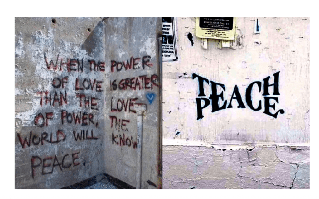 - Look at some art for peace. Here is a gallery of street art – lots of great conversation starters