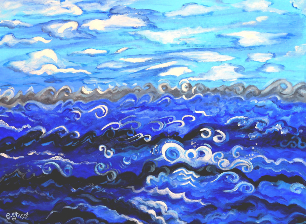 God breathed in again and organized land, water, and sky from the mysterious void. God breathed out and the land grew, steady and sure and firm. And the water rushed over the land, running and leaping and swirling with joy. And the sky stretched out like she was just waking up, filling the space with oxygen, wrapping the land and the water with a blanket of air. God saw the glory of the land and the water and the sky, and saw they were wonderfully, beautifully alive.