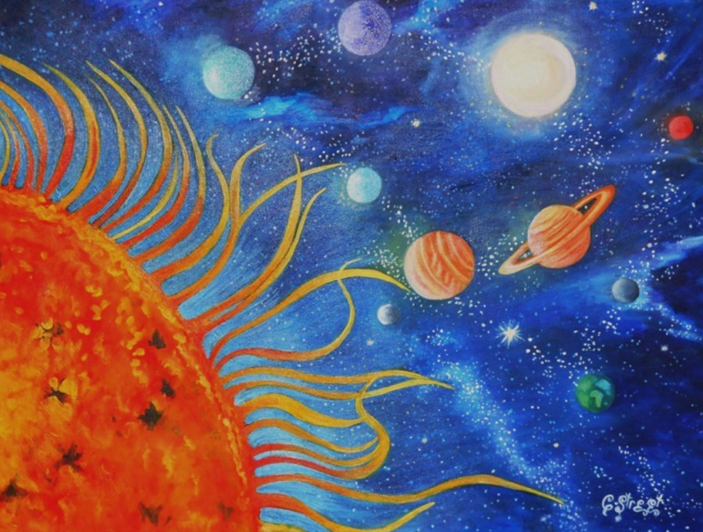 From the light and the dark, Father and Mother God organized the sun, the moon, and the stars. Each shone brilliantly, and they rejoiced in themselves and in God who had created them. Father and Mother God laughed in delight. “You are glorious, mighty, and whole,” they said. And the light and the dark shone with purpose.