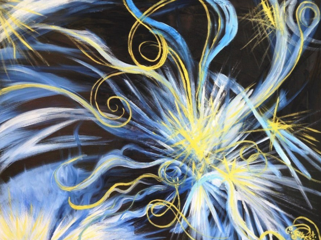 God started with an enormous breath. As Father and Mother God breathed in, the light and the dark separated out, shimmering. Dark over here. Bright over there. They breathed out and the light and dark grew bigger and fuller and brighter and darker.